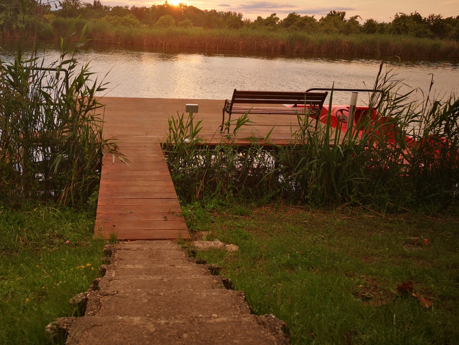 Kb 15 m2-es stég, csónak, vízibicikli. Áram, világítás van a stégen. A stégen egyszerre többen is tudnak kényelmesen horgászni. Folyamatosan etetett hely.